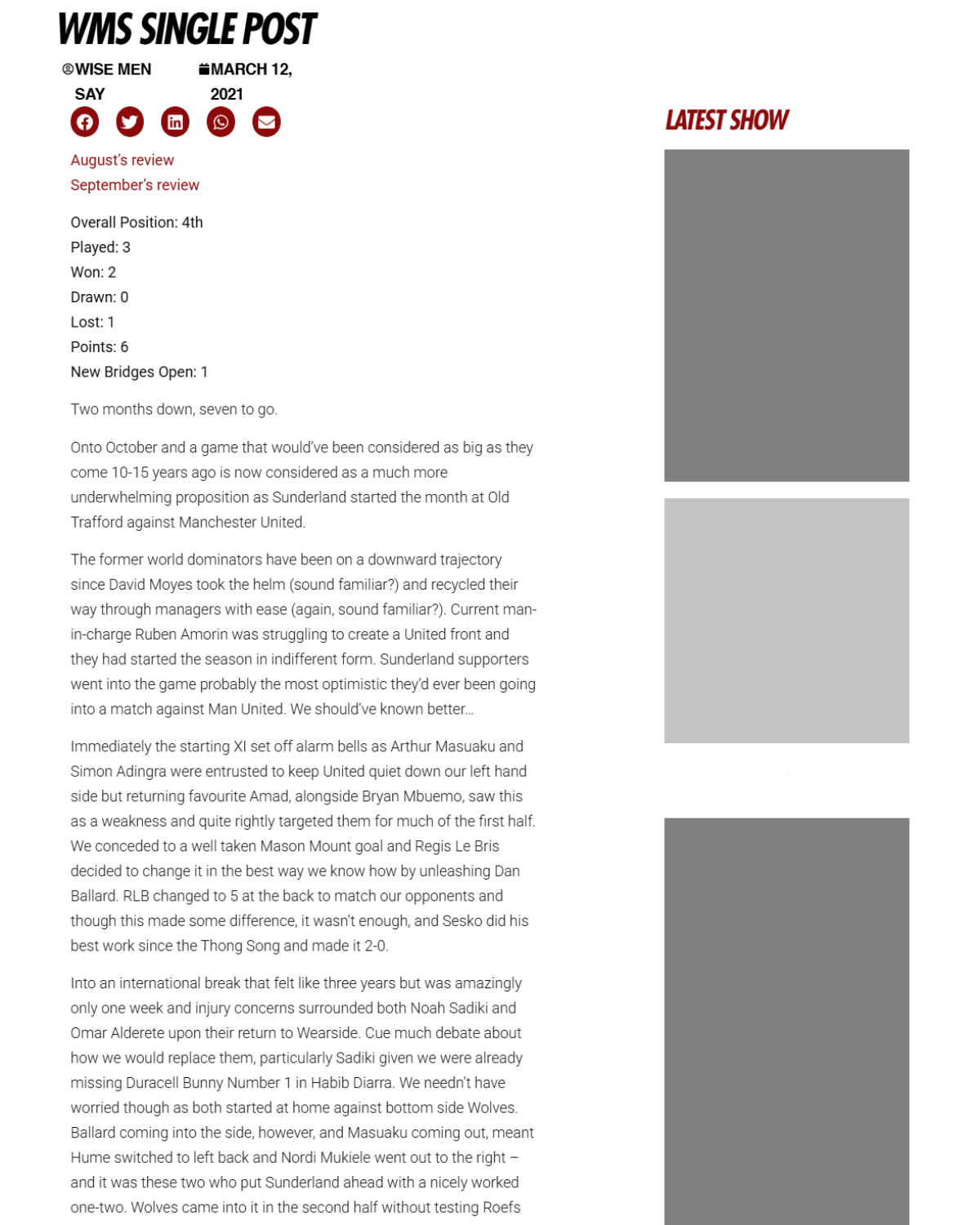 • Sunderland’s December In Review – A daunting month on paper, but not too bad… January 16, 2026